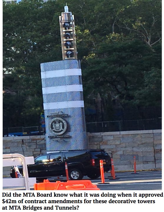 The obvious obliviousness and of the Governor, pissing hundreds of millions of dollars on light shows, dangerous cashless toll booths, and state sealed useless objectiles by all bridges.