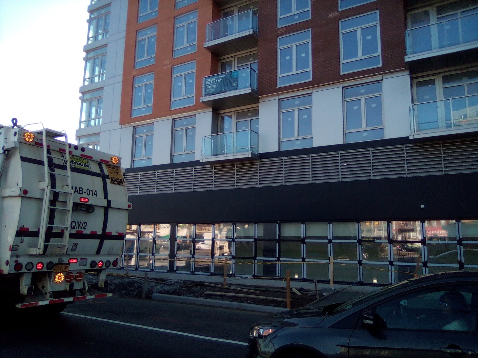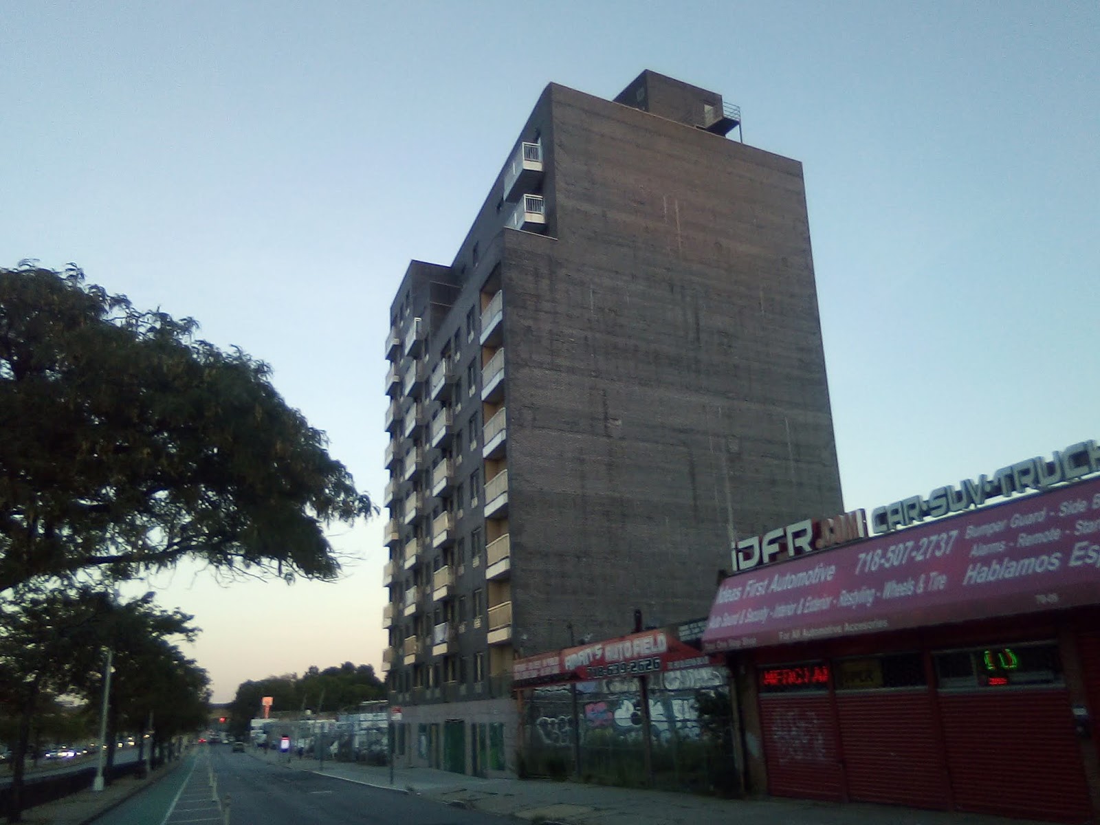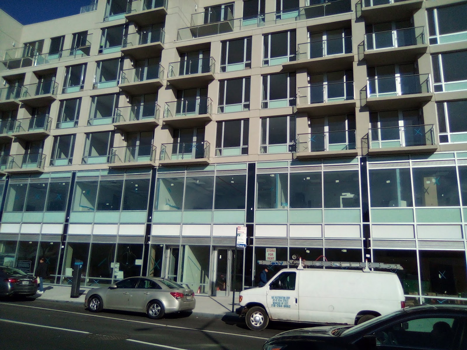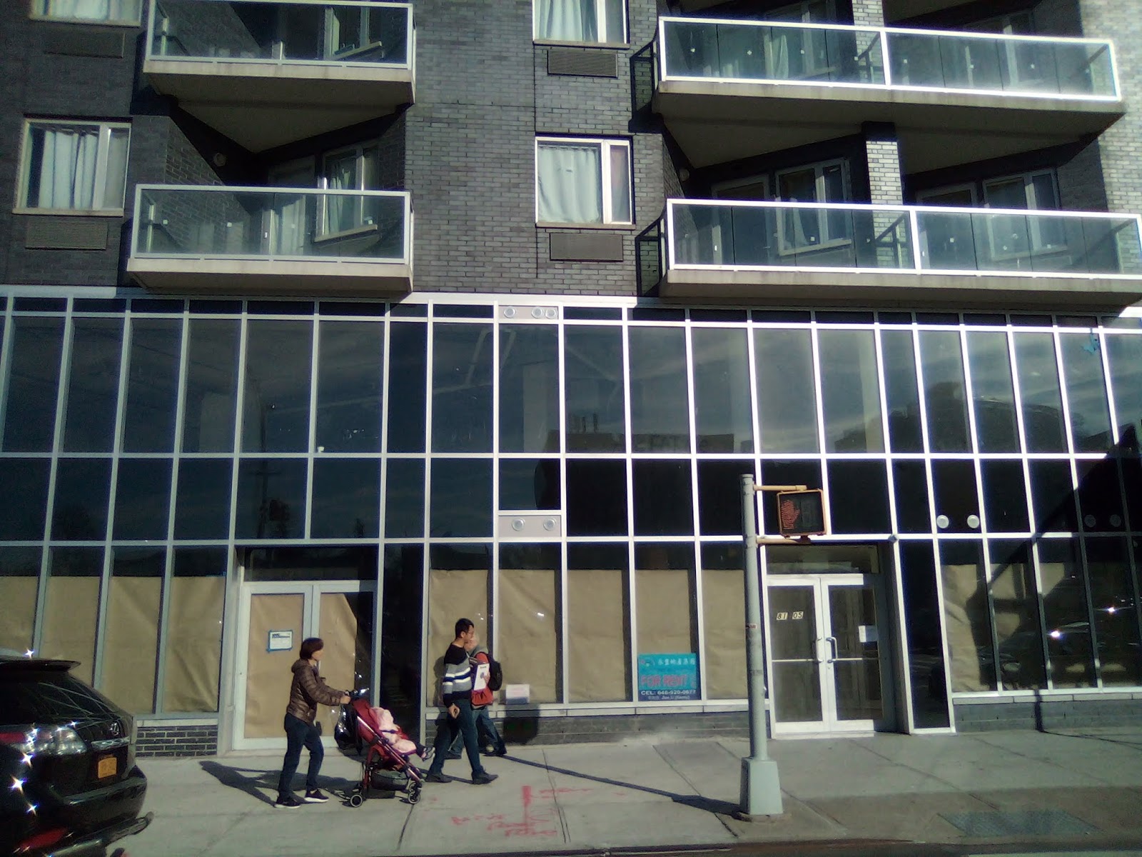 Remember when Queens Boulevard was called the boulevard of death? Because of the high amount of vehicular accidents that put the fear of death in pedestrians that out of necessity would dare to tread across the four lane quasi-highway? Well, it has got comparably safer to commute and cross than in the past, but it has been replaced by a new form of existential threat, and that is over-development. With this post, I bring forth three technically new buildings that have been built but have remained strangely unfinished and apparently have yet to be occupied. (But strangely they are already on the market).