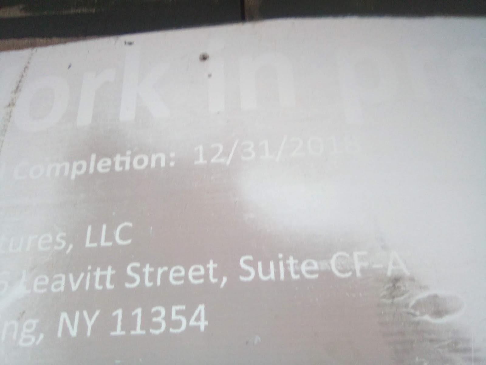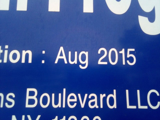 This sign has aged quite a bit, but upon closer inspection, this building was supposed to be completed a few days from now in the year 2018