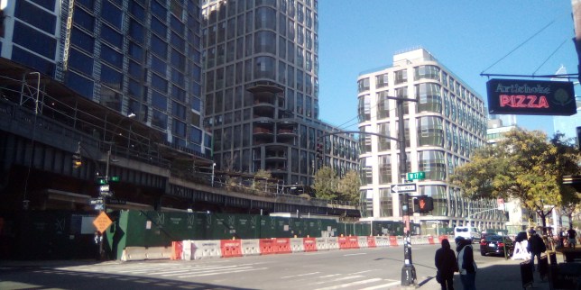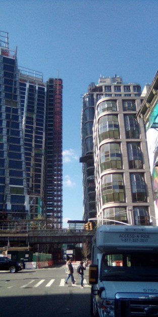 Down the block on 10th Ave. by the luxury elevated promenade the Highline is a dense row of luxury tower buildings under development but nearly complete, casting an ominous high end market rate shadow over Fulton Houses. Even though the tenants are still valiantly fighting the city from the RAD proposal, these lux buildings seem to projected to be completed in concurrence with the NYCHA buildings planned for destruction.
