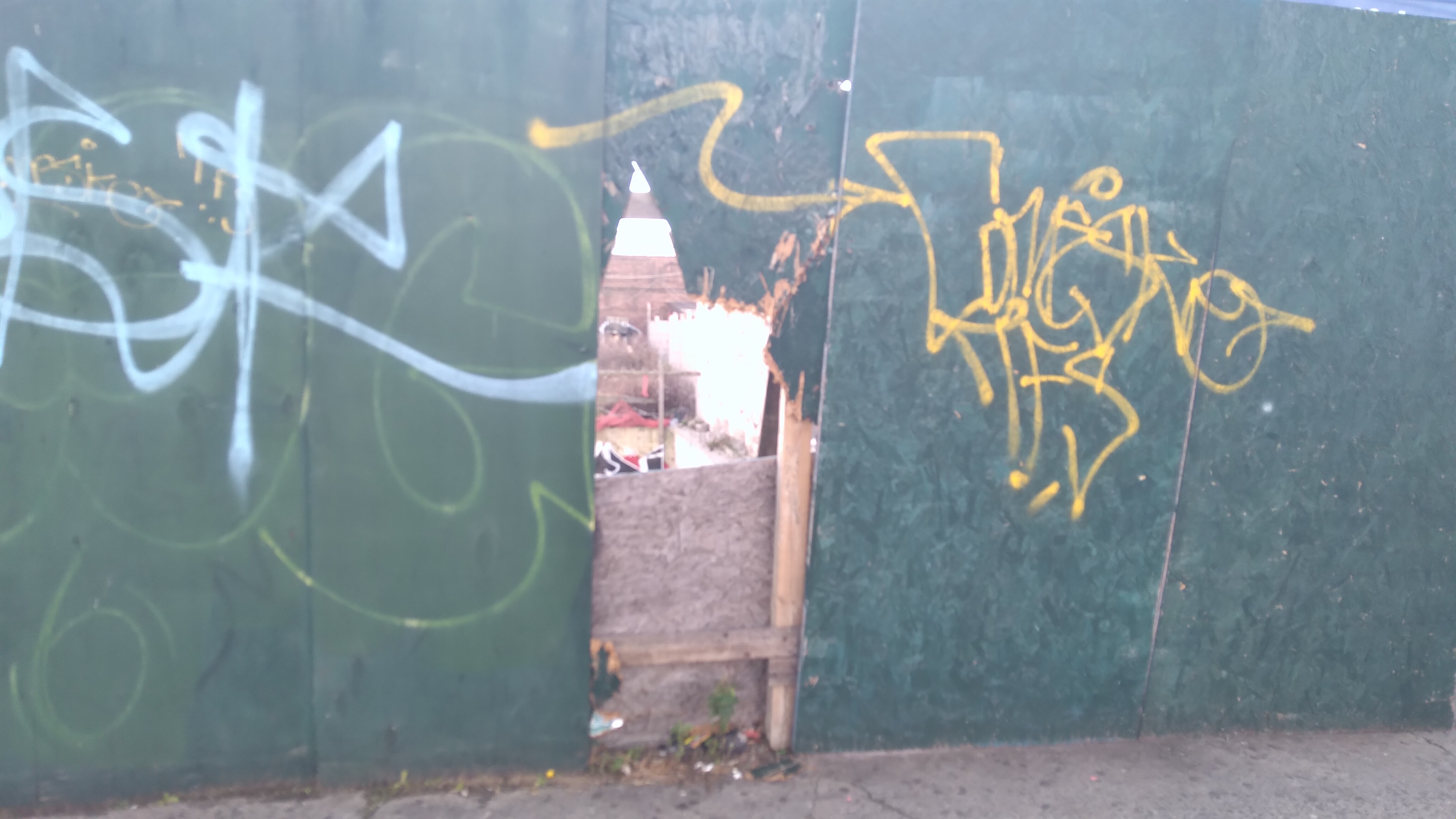 And if Signature PP or whoever owns this pit think this is going to stop rival taggers from getting in they are sadly mistaken. A crowbar or even a $1.99 Trisonic flathead screwdriver that you can get from the nearest 99 cent stores can easily pry those planks down or even a good rain to loosen them up for a tae kwon do superkick.