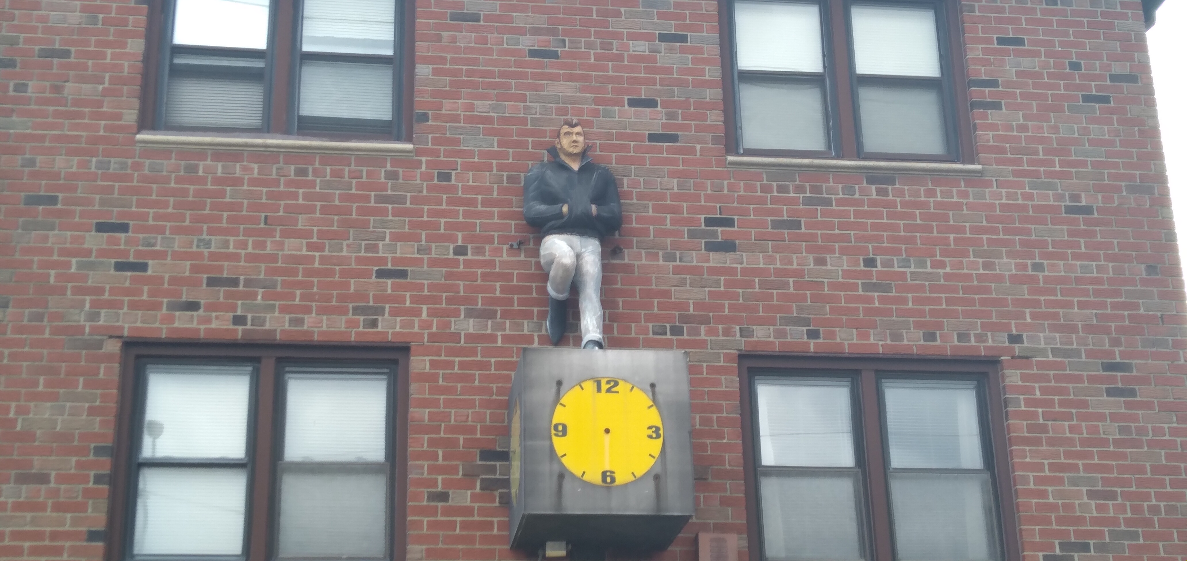 Residents of Ozone Park and Howard Beach tend to be familiar with one of the area’s most conspicuous oddities, the greaser on the clock.