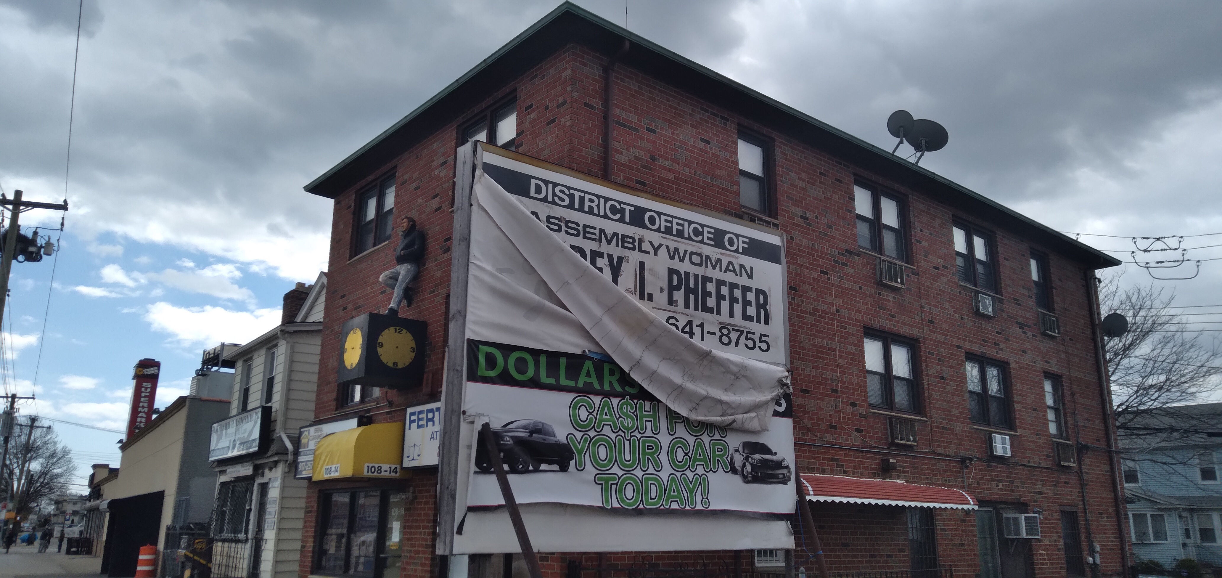 This scene is on Cross Bay Blvd. at a commercial building in Ozone Park