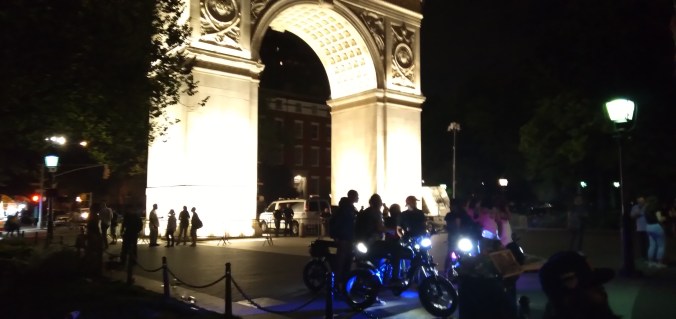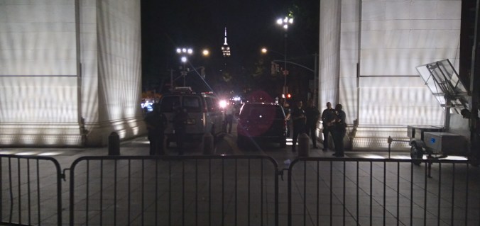 But at the moment darkness fill the sky, it got foreboding on the ground. High brass officers and cops showed up with a bunch of barricades and started cordoning off the Arch and part of the entrance/exit ways. It looked like they were going to honor the Village residents complaints and make a serious move the quell the festivities going on in the park.