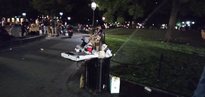 Although the general consternation about how Washington Square has become a veritable den of iniquity, the park has been actually going downhill for about a year now since the pandemic began and was initiated by a sole homeless man name John Meshefski claimed and occupied the then cordoned off area around the fountain for about 2 months in the late spring and strutted around nude like he was the last man on earth. Not long after as pandemic guidelines were slowly lifted, NYU students started to throw the first of the weekend all night DJ ragers with zero repression from the NYPD.
