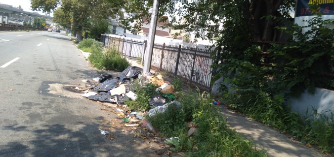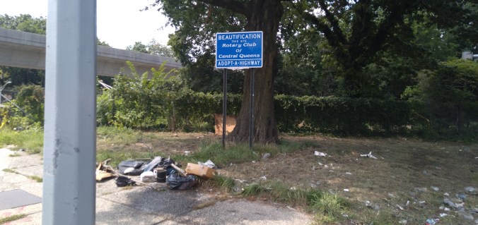 This is only just a segment of the Van Wyck Garbageway, but as the Queens Chronicle noted above it’s the most recognizable for frustrated residents and recidivist litterbugs. It might get cleaned up eventually, but garbage will continue to re-materialize as long as the grass keeps growing and the earth keeps spinning on it’s axis and as long as Southside Queens streets continue to be the city’s linear dumpsters.