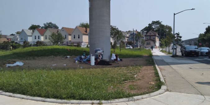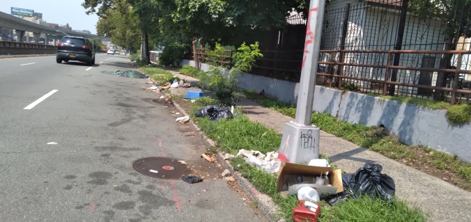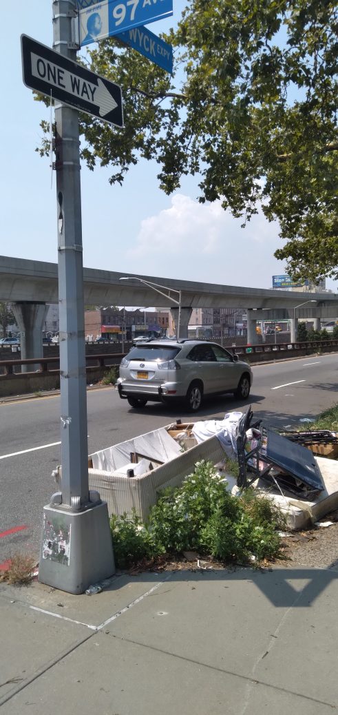 Cook reached out to the Chronicle after trying to work with the Department of Sanitation. There were two areas of concern for her — one at a residential intersection, and another along the Van Wyck Expressway service road in between Rockaway Boulevard and Conduit Avenue.