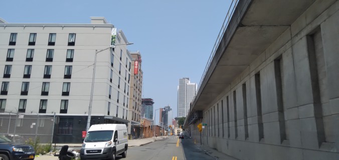 The Garbageway concludes at Atlantic Avenue, bordering Richmond Hill and Jamaica and the majestic high speed rail pillar of the JFK express train, buoyed by circle of discarded clothing and shopping carts…