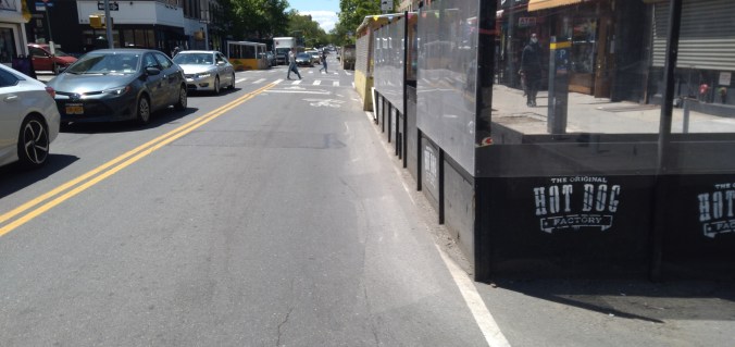 And the thing that’s remarkable about bike propagandists like StreetsBlog NYC praising open restaurants to the skies is that even when they are not violating traffic laws, the roads still don’t have sufficient space to ride a bike by them and makes driving more perilous despite the precautions taken by restaurant owners to make their structures more visible (like a house on the street wouldn’t already do that)