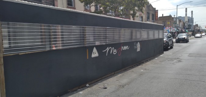 Besides the obvious haste to put these curbside bungalows up in order to opportunistically take advantage of the City Council and current Mayor’s Open Restaurant law, judging by the the exposed wood paneled wall entirely flushed against the 33rd St. Station stairwell, what’s curious is how to patrons get served inside that shanty?