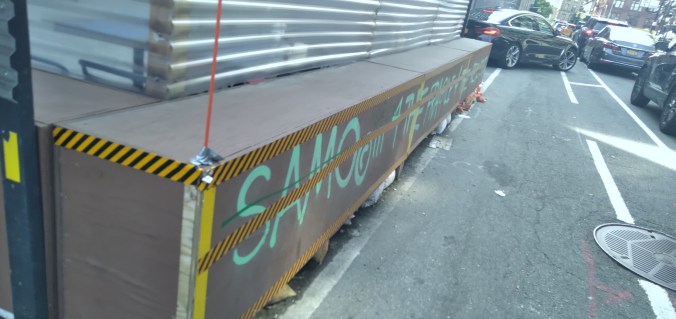It can’t be stressed hard enough what damage this shanty is going to do if one of this restaurants neighbors houses goes on fire, or even their own business (unless that hole was put there for that reason) considering an incident where a mixed-use building got torched on Bleecker St. because the FDNY couldn’t get around a shanty in front of the restaurant where the fire started on the ground floor. And never mind how flammable this and every other wooden shanty in NYC is vulnerable to any random kindling or arson attempt.
