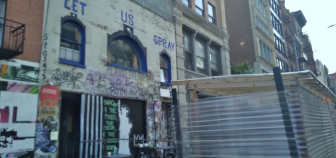 The ironic thing about these shanties which purport to bring people and vibrancy back to city streets and also add a touch of European savoir faire while keeping more cars off the street in order to improve the environment, it’s ultimately done the exact opposite and has brought down the quality of life and environment in neighborhoods. Besides the horrendous site of mountains of garbage piled up against the structures and inside them and providing convenient shelter for a new generation of rats to feed and breed in them, these filthy shanties have brought forward a disturbing new trend of high end blight of rampant graffiti wholly comparable but more artless than the aerosol paint bombings of subway trains in the Bad Old Days in the 70’s-80’s. Which perfectly falls in line with the New Bad Days era of the last 5 years.