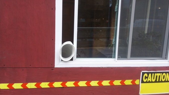 Apparently when they were building this aesthetics wasn’t even on the agenda or even architecture or carpentry, but making this shitpost into a veritable ice box was. They equipped this with FOUR HVAC units. Apparently this was made for two establishments judging by the outhouse that’s built in front of a small restaurant next door.