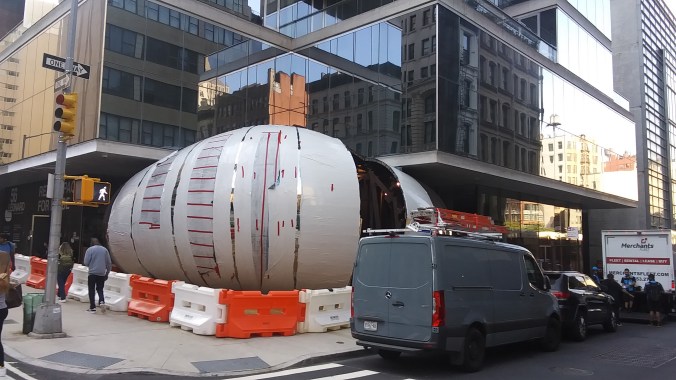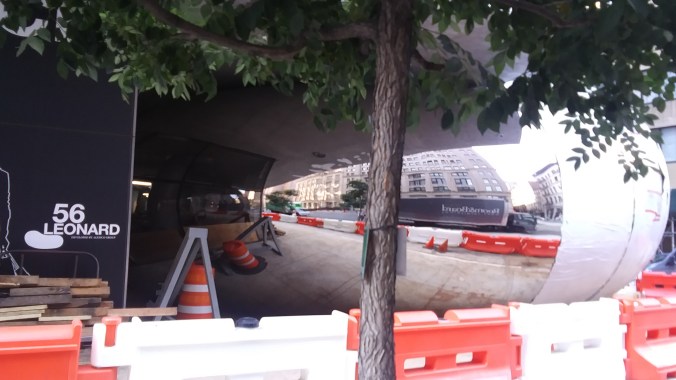 While that is just a question of the tower developer’s and owner’s judgement (and bizarre lack of it) the bigger mystery is the bean itself, which was announced it was going to arrive and be installed on Halloween 2019. Passing by the stylish haphazard monolith a year later after that announcement, I found the bean still covered in what looked like the wood panels that were pried from the crate it arrived in. (Not sure if Moishe’s delivered it).