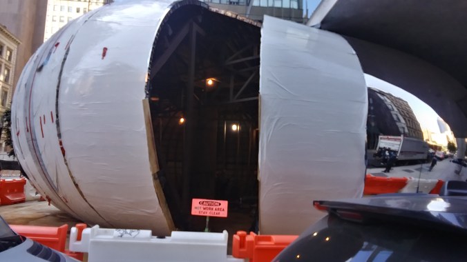 While it’s still covered to protect it from the elements and smudging from curious passerby, it’s blatantly noticeable to any observant eye that this mighty bean is more for load bearing than for aesthetics, as the once former vacant space is now covered and snug tightly in the tower base like a giant doorstop.