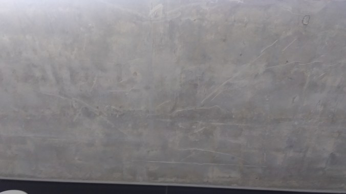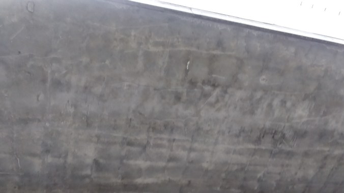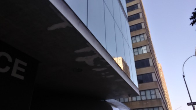 Don’t know what’s above this ground level ceiling, because it sure looks like there’s something wrong with the masonry. Maybe it’s the stress from 30+ stories of reinforced steel, glass and cement that is causing these visible cracks which were apparently sanded and caulked over.