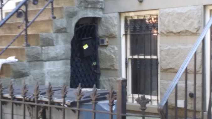 No luck and no Adams. Although there was a yellow sheet affixed to the mail box to his basement entrance where he, um, lives. It sort of looked like a citation, but since there was an occupied vehicle idling in front of the house and I’m not a real reporter with credentials, I couldn’t really walk in and take a gander at it.