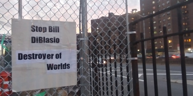 While there was an original plan to improve the park to keep the water level from overflowing that caused major damage to NYCHA buildings across the FDR drive that was done in coordination of the community concern by placing berns against the highway’s path, The Blaz abruptly threw that plan in the garbage and memory holed it, then his minion city planners at the Dept Design and Construction came up with an entirely new plan that warranted the leveling of 1,000 trees and construction of a 10 ft platform of where the current park stands at a cost of 1.45 billion dollars. As expected, this did not go over well with the residents and community activists who have been adamantly demanding to stick with the original, less destructive and less expensive plan.
