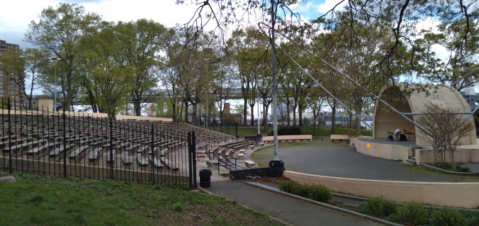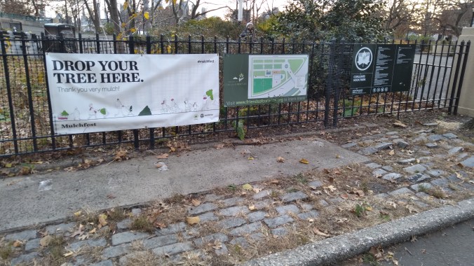Another spot where The Blaz failed to cover the heinous optics of the park’s annihilation was by the amphitheater bandshell. which can easily be witnessed by crossing the pedestrian/bike overpass by Collyers Rock Park (where it’s about to have it’s annual Christmas Tree Mulch Fest, which carries a grimly ironic pall right after de Blasio’s 24/7 week long massacre mulchfest)