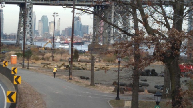 Getting to see the East River Park crime scenes was extremely difficult, just like the Blaz and the shadow cabal directing this new “climate resiliency” plan wanted. The only way a curious observer could get evidence of the city’s ecocide was via the FDR drive and from the Williamsburg Bridge pedestrian and bike paths.