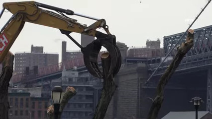 Shockingly, right when the contractors and the chainsaws started chopping the first of the parks trees, a state appeals judge ruled another stay maintaining the legal suspension of the demolition. At least it was supposed to, because despite the best efforts of the protestors and their attorney Arthur Schwartz, the contractor boss of the resiliency demolition took the court order and threw it on the ground like it was garbage right in front of the protesters and the cops.