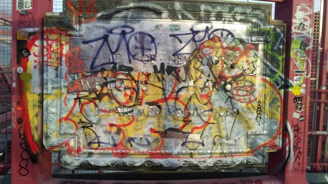 In Downtown Manhattan, a man drew swastikas on a column at the entrance of city hall and the big charging bull. The homeless fascist also tagged swastikas on a construction site wall in the area.