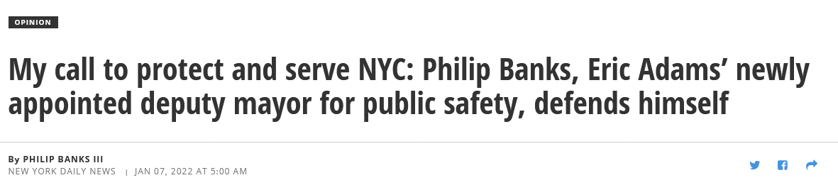 And Phil Banks didn’t just do this on the down low, he announced this in a major private equity firm owned local newspaper The New York Daily News and was given editorial space by the print/digital publication in the opinion section to defend his self-hiring as well.