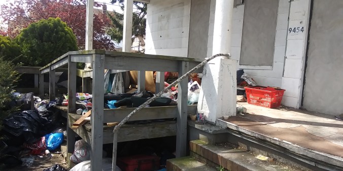 Although the D.O.B. actually did try to put the owner of this property on notice for enabling squatting on his porch but apparently it was easily removed. Which is kind of sad given they waited about eight months to go back there to tape one up.