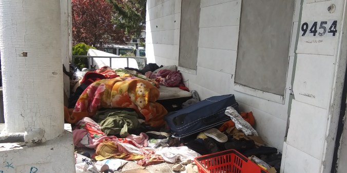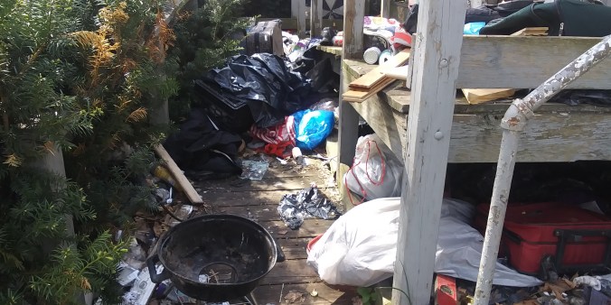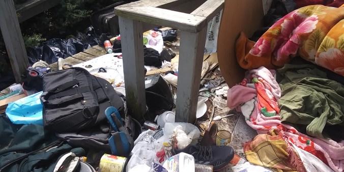 The porch is still reliable to sleep rough in, although the mattresses and everything else that’s being hoarded here looks to provide enough comfort.
