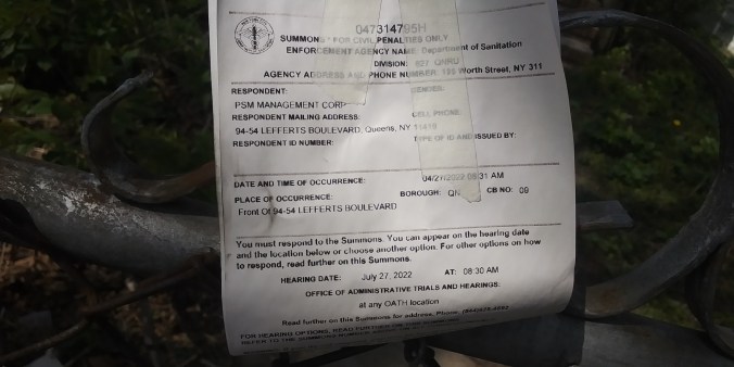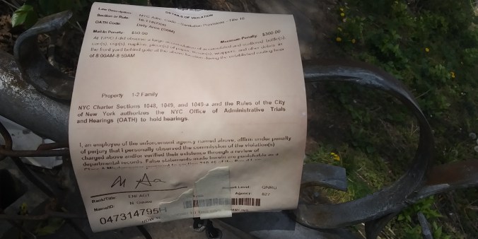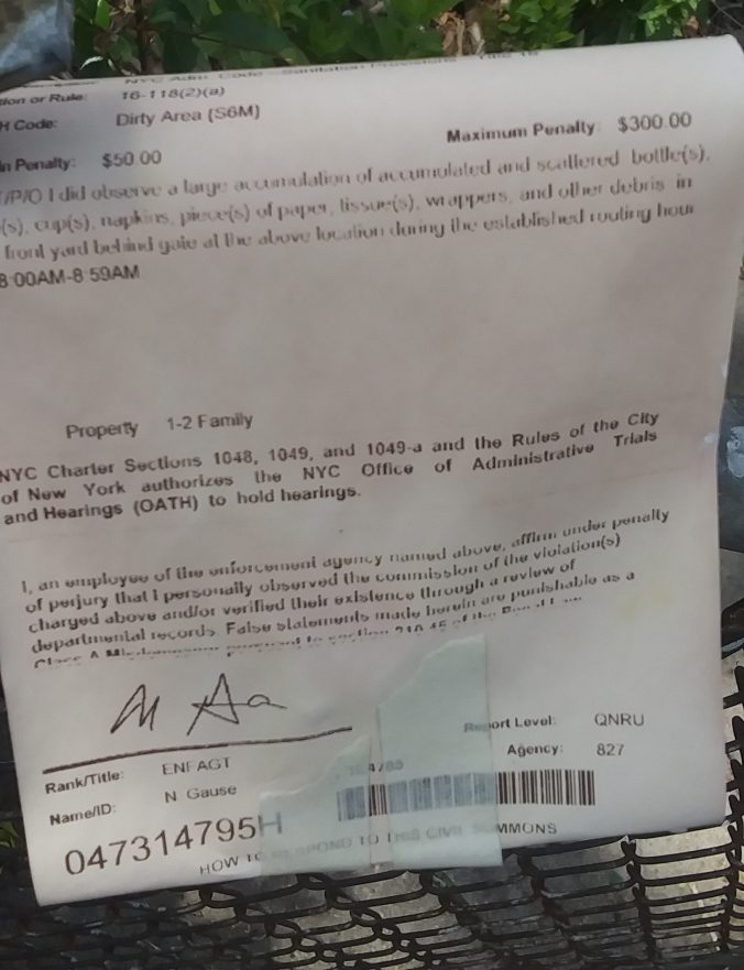 Apparently by the Department of Sanitation and not the Department of Buildings, (hey good job Jessie!)