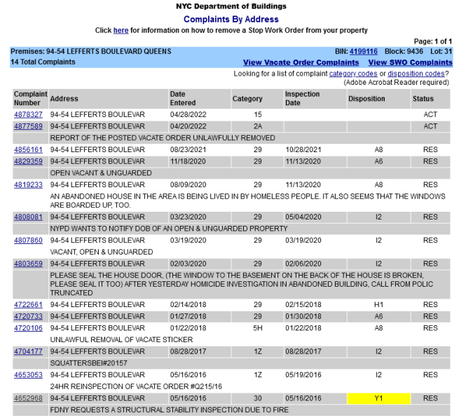 For all the talk about how “public safety is the prerequisite for prosperity” Mayor Adams has been doing nothing but drone sloganeering and talking points to get stuff done to bring down crime on the streets and in this case hold recidivist derelict property owners accountable as well, just like his abominable asshole predecessor de Blasio. Nobody is going to prosper with violent sociopaths roaming around and hiding in the shadows waiting to prey on the citizenry and the New Bad Days in New York City will continue to sow fear and ultimately more injury, physically and financially.