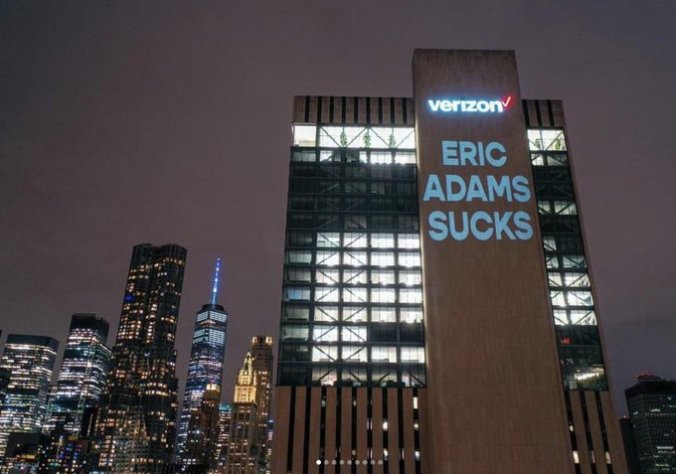 Mayor Eric Adams favorite credo “NYC has 8 million people with 30 million opinions, but there’s only one mayor” got the biggest opinion of him he’s got so far when one of the 8 million showed one opinion about him projecting on a wall on the Verizon office and transmitter building in downtown Manhattan and he can’t really shake it off like he usually does with the crimes continuing massive rise in all major felony and misdemeanor categories.