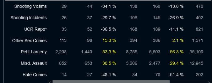 At least it looks like the revival (and rebranding) of the anti-crime gun removal NYPD units has made an impact with shootings and murders on a slight down trend but they are still happening with more frequency compared to pre-pandemic times three years ago and even a decade ago.