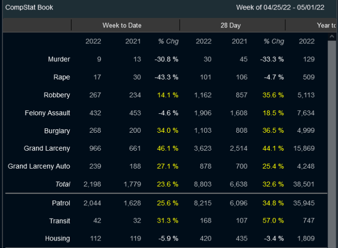 Mayor Adams ended the first month of this violent spring in NYC by holding a summit with every precinct commander about the stubborn rise in major crimes, which the NYPD high brass actually do in their COMPSTAT meetings at the end of the month. The distinction being that Adams wanted to discuss the sweeps of homeless encampments and shuttling of homeless people to shelters which have also failed to garner results since barely a fraction of the indigent accepted to go to them and also to oddly defend commissioner Sewell (or maybe his choice to make her commissioner). Like the recidivist criminals on the streets, cops of all stripes reacted to the two hour convention like the joke it was and since journalists were suppressed from attending this hearing, this was clearly just another media and optics diversion by Adams and his media managing minions for the self-proclaimed general and shepherd to project leadership and swagger as a deflection from the fact that he’s been anything but a leader to bring down crime like he promised when he ran for mayor at this point of time last year. He didn’t even feature this crime summit in his weekly self-aggrandizing b-roll video of his mayoral “accomplishments”