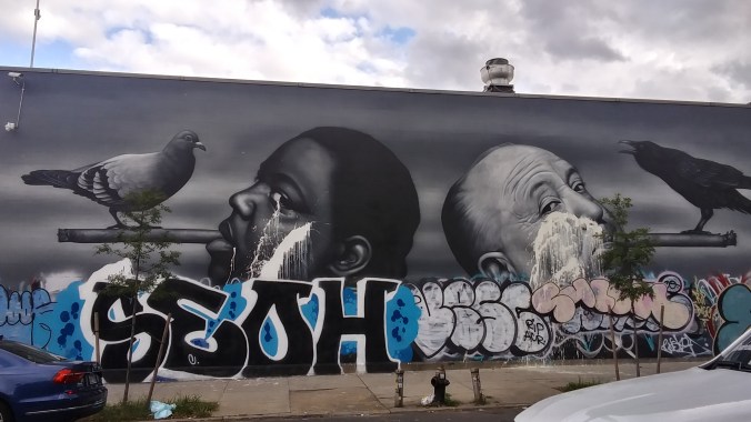 In Clinton Hill, a mural of Christopher “Notorious B.I.G.” Wallace got vandalized and for some reason this was considered a big deal. Murals get vandalized all the time, like this one of Biggie Smalls in Ocean Hill.